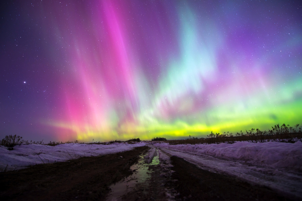 The Northern Lights, or Aurora Borealis, paint the night sky with vibrant hues of green, pink, and purple. This natural phenomenon, caused by solar particles interacting with Earth's atmosphere, is best viewed in high-latitude regions.
